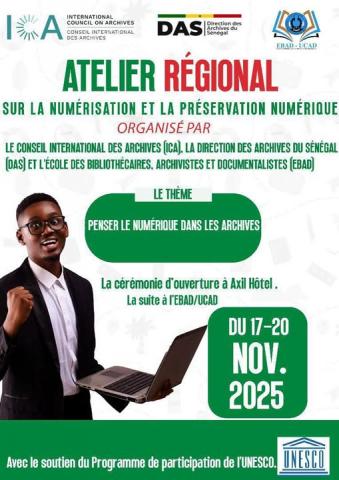 La Direction des Archives du Sénégal (DAS) et le Conseil International des Archives (ICA), en partenariat avec l’École des Bibliothécaires, Archivistes et Documentalistes (EBAD), organisent l’atelier intitulé “Penser le numérique dans les archives”, qui se déroule à Dakar du 17 au 20 novembre 2025.Cet atelier rassemble des professionnels, enseignants-chercheurs et experts autour des enjeux contemporains du numérique appliqué à l’archivistique.